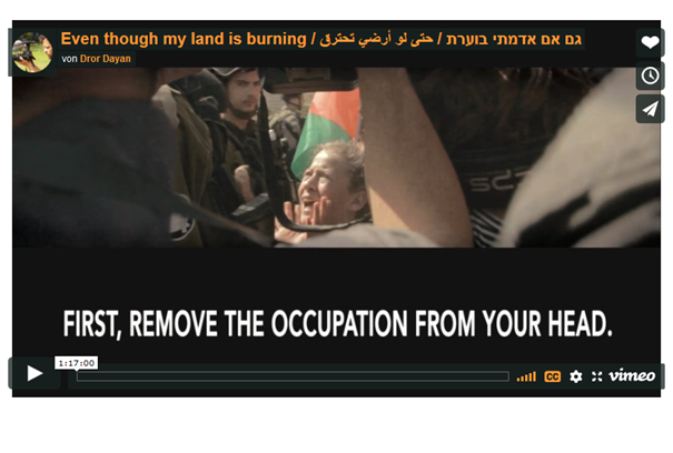 در این شرایط حساس، حضور نسل جوان فلسطینی درصف اول مبارزه و مقاومت روزمره آنها علیه دولت اسرائیل امید بخش است. جوانانی همچون (عهد تمیمی) دختر جسوری که تصویرهایش در حال سیلی زدن بر صورت مامور ارتش سرکوبگر اسرائیل در رسانهها انعکاس جهانی داشت. او در این مستند که پیش از این رویداد ساخته شده، نیز حضور دارد.