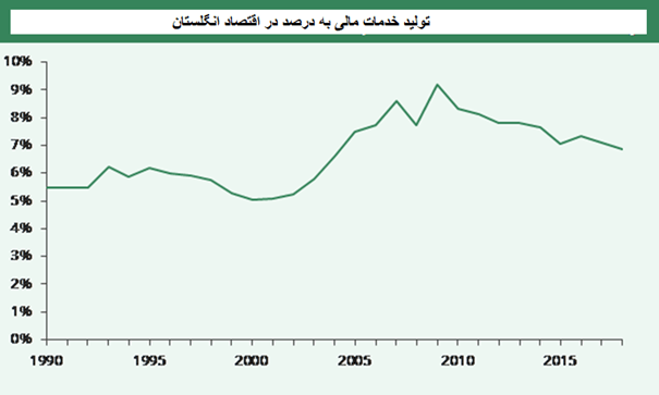 بریتانیا بیشتر کشور بانکداران، وکلا، حسابداران و صاحبان رسانهها است تا کشور مهندسین، سازندگان و تولیدکنندگان. بخش بانکداری بریتانیا از وزنهی بسیار سنگینی برخوردار است، اما در مقایسه با دیگر 7 کشور صنعتی بخش تولیدی بسیار کوچکی دارد.