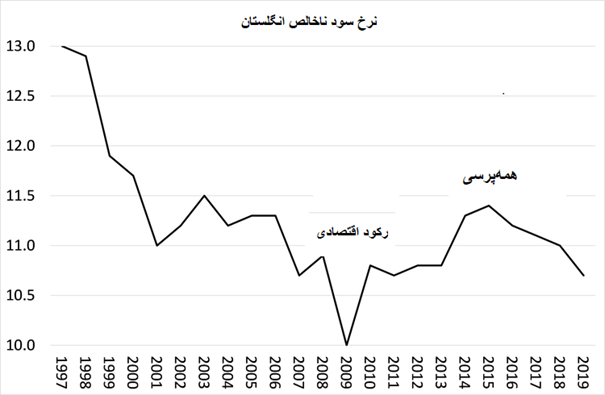 دلیل این امر نیز بسیار روشن است. میانگین سودآوری سرمایهی بریتانیا کاهش یافته است. حتی قبل از همهگیری کووید ـ 19 در سال 2020 متوسط سودآورد (طبق آمار رسمی) 30 درصد کمتر از سطح اواخر دههی نود و حتی بدون مدنظر گرفتن رکود بزرگ کمترین نرخ را دارد.